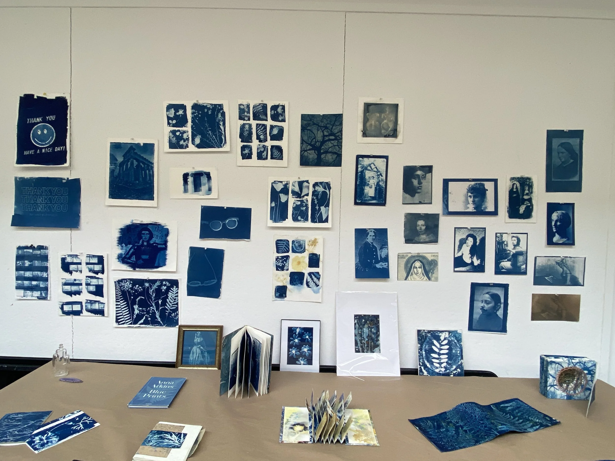 These images and objects will be assembled into a cohesive artist book using the drum-leaf binding structure, originally developed by Timothy Ely, an adhesive-based form that opens nearly flat and allows for full-page spreads, making it especially well suited to sequencing cyanotypes into a visual narrative.